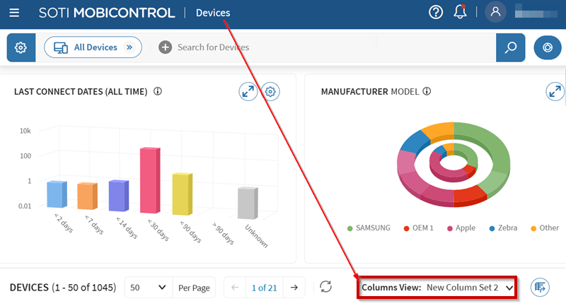 Creating Column Views and Changing the Columns of the Devices List