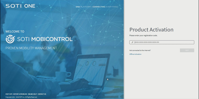 Note: If you want to activate an offline deployment of SOTI MobiControl, see Activating an Offline Deployment of SOTI MobiControl.