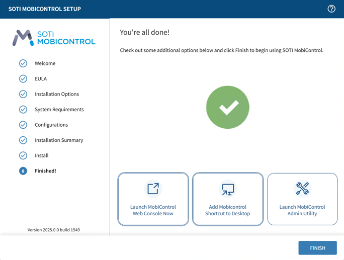 Note: If you encountered any issues during installation, see Common SOTI MobiControl Installation Errors.