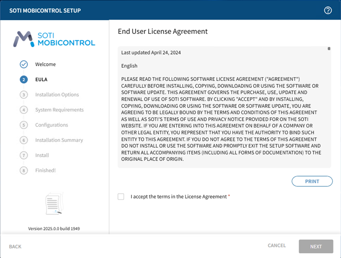 Read and accept the SOTI MobiControl license agreement. You