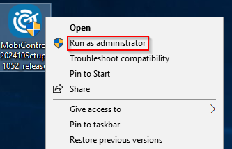 Run the SOTI MobiControl installer as administrator to launch