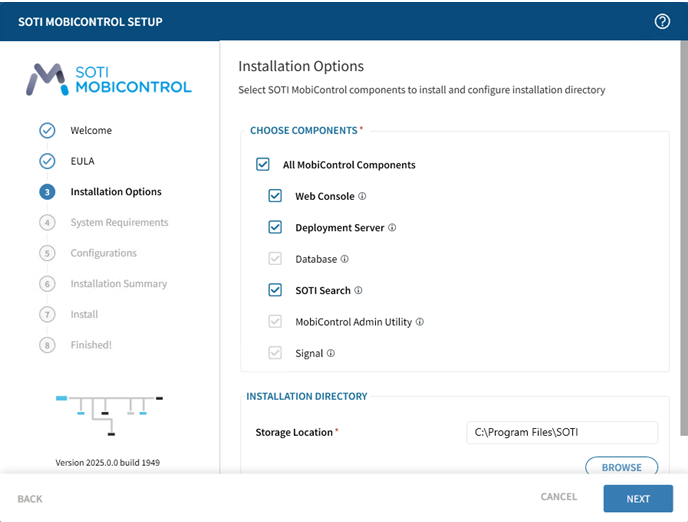 Select Browse if you want to change the destination folder from the default C:\Program Files\SOTI\MobiControl. Select Next.
