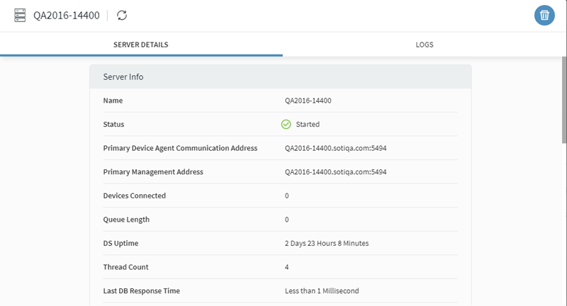 Details or Logs tab. Note: You cannot delete a deployment server if there is a single deployment server in the configuration and you cannot delete a deployment server with a status of Started.