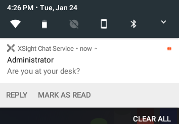 The device user receives pop-up notifications from the support technician when not in a Live Support session. The device user can choose to respond or mark the notification as read.