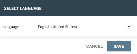 Language About this taskUse this section to select the language SOTI XSight is displayed in. Procedure From the Menu button select Language. The Select Language panel appears. From the Language dropdown menu, choose the language you want SOTI XSight displayed in. Select Save to apply the change.