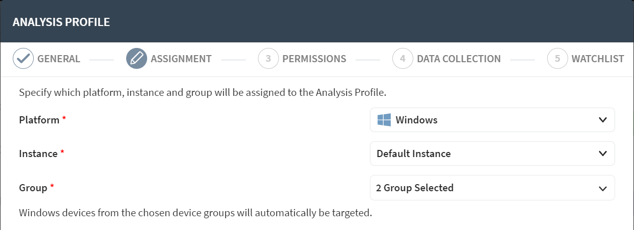 Select the conditions for the profile's watchlist. The Watchlist dashboard