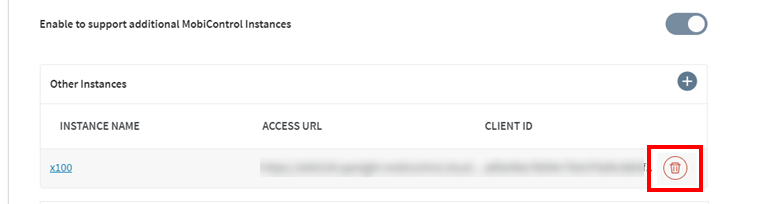 Table 1. Instance Details Setting Value Name Enter the name of the non-primary instance to add. The name is reflected on the device search points throughout SOTI XSight (Incident Management, Chat Container and Operational Intelligence). Access URL The URL of the non-primary SOTI MobiControl. Note: For SOTI Identity,/mobicontrolin the URL should be in lowercase as SOTI Identity is case sensitive.Use SOTI Identity for user authentication Toggle off