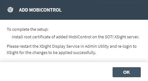 - Install the root certificate of the added SOTI MobiControl instance on the SOTI XSight server.