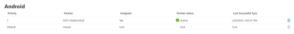 Attention: After a successful sync on Microsoft Intune (known earlier as Microsoft Endpoint Manager), other third-party compliance partners are not be overwritten by SOTI MobiControl. If you want to enable SOTI MobiControl as the compliance partner, you must first manually remove the existing third-party compliance partners from the Microsoft Intune Admin center.For example, the following scenarios could occur:
