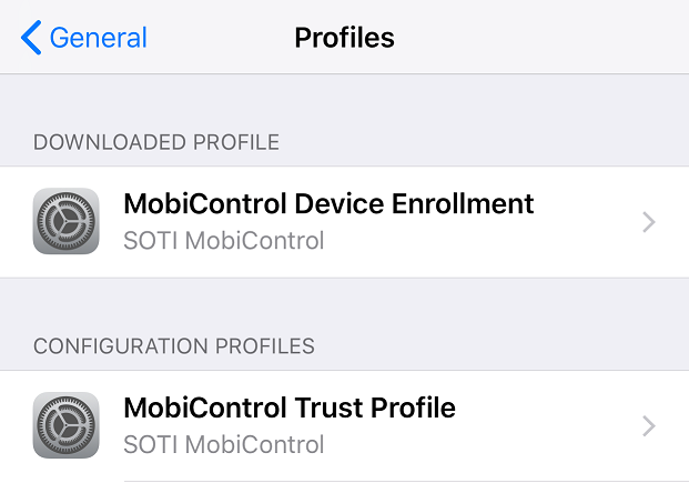 When downloading either the Trust or MDM Profile during the iOS device enrollment process, the user must accept the Safari prompt and navigate to the Settings app to install the downloaded profile. The downloaded profile can be found under the “General”->”Profile” menu: